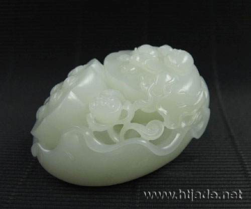 大荷叶将两只莲蓬紧紧包裹其中,可爱的顽童手持莲花嬉闹于莲蓬之上,栩栩如生的莲蓬让顽童仿佛坠于莲海般。温润白净的玉质令莲藕如成熟果实般逼真。整个作品设计巧妙合理,雕刻完整大气,工艺师的精湛,让玉石剥离了尘嚣浮躁,蜕变出惊世之美。 作品寓意吉祥,故有连生贵子美好蕴意!