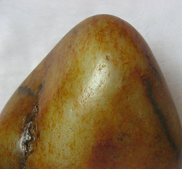 这个绝对的和田籽料的.而且皮色是原皮没动过的.皮色看起来有些粗,但是肉质很细密,白度也很好的.