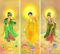 阿弥陀佛(接引佛)、观世音菩萨和大势至菩萨合称“阿弥陀三尊”,又叫“西方三圣”。