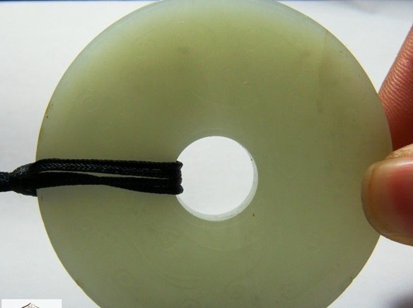 看到这块璧的边缘有崩口,感觉是碰撞时形成的,但和田玉的硬度很大,璧很厚实,一般的碰撞是不会有这样的崩口的,所以感觉硬度不够,建议到当地部门去鉴定下。