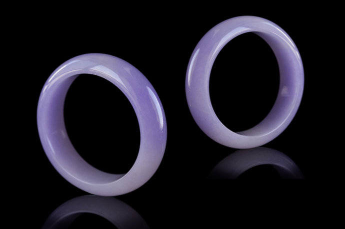 一对顶级紫色翡翠手镯,将于6月3日、4日现身北京甄藏2011春季翡翠拍卖会珍品展。这对紫色翡翠对镯,紫色非常鲜艳,色调浓郁饱满。手镯宽为19毫米,厚9毫米,内径58毫米,外径76毫米,用料非常厚实。更难得的是,种份细腻通透,在紫色中颇为少见,整对手镯都没有任何瑕疵,完美性非常高,珍贵的配成一对,是翡翠中的难得收藏级珍品。
