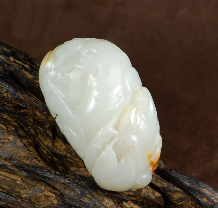 → 和田玉黄皮羊脂白玉籽料 五福把件 .