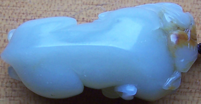 这边显示器看图片颜色泛蓝,虽然表面隐约能看到棉甚至白色的点状,但感觉似乎有点太匀称了,说不好,不像和田玉那种自然而然的感觉...