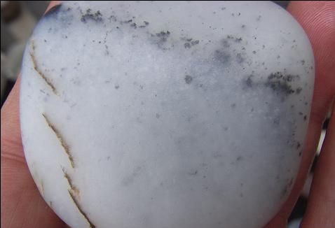 上图是窜浆的白色戈壁料子,僵点使得料子特别白。所以尤其使购买白料子的时候,要在合适(不强不弱)的光线下仔细观察。