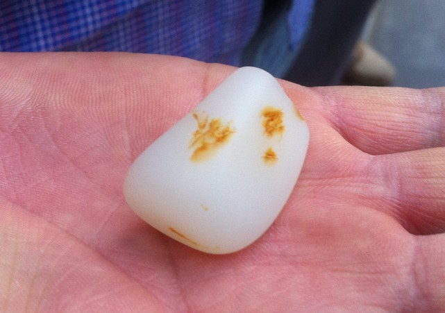 今日在和田市场上看到一块小子料,初上手时感觉还不错,但细细一看,呵呵!问题大了。实话讲,它造的非常不错,一般情况下是很难辨认的。初入市者,那更是要小心哦!我把它拉出来晒晒!供大家借鉴!!