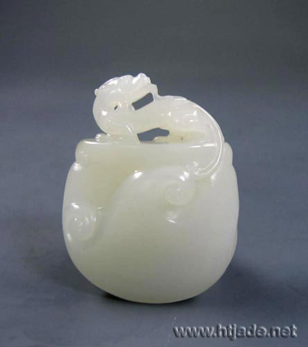 飞龙回首,侧边琢一小鼠,蕴涵望子成龙之意(鼠,在十二地支中代表“子”,)