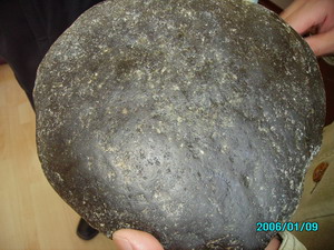 是墨绿色的,种10KG,高5CM,中心直径30左右,用手摸有油渗出来的感觉