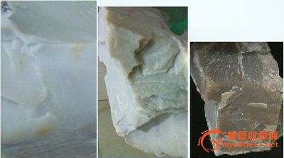 我上手的几快罗甸玉颜色都是白中带灰,少量的一点使纯白色的,还有有一点少量浅绿色的,眼睛直观看上去,料明显的油润度不够,表面干吧吧的。从机器切割后的表面看结构也很细腻的,但大多数料的发闷僵,感觉就是玉中带石,石中有带玉的感觉,没有那中和田玉长见的光泽,显得呆板缺少玉的灵性。