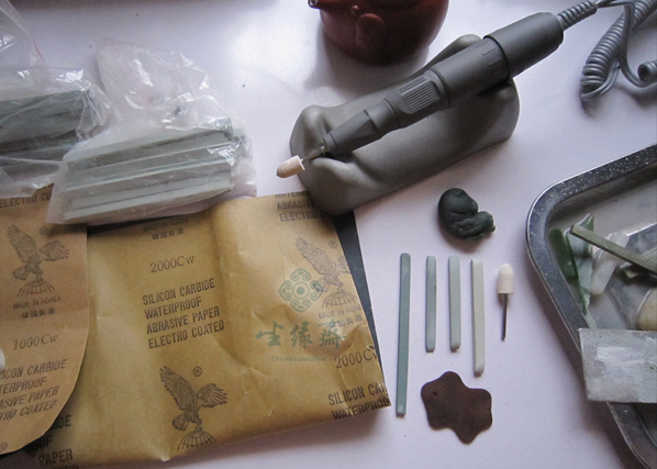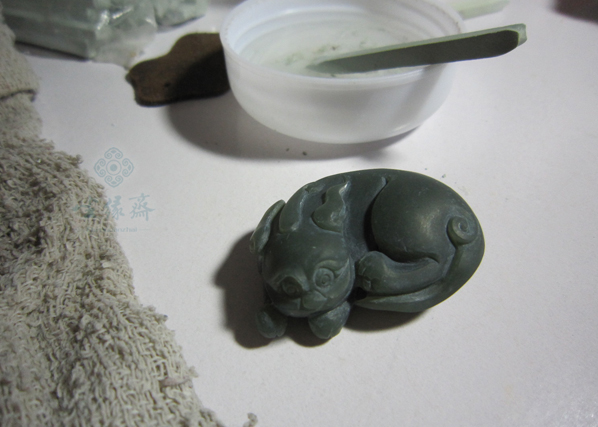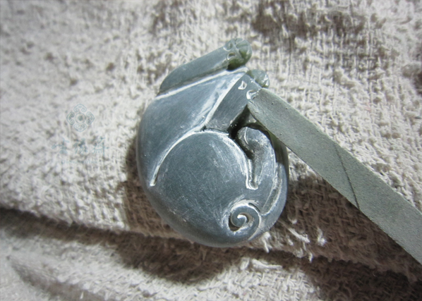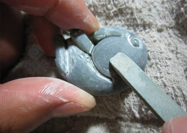 第四步:用2000砂条及砂纸,很轻轻的揉搓,不要用力,用力大的话,容易给宝贝留下砂条的痕迹;快要完成了,抛光是很累人的体力活: