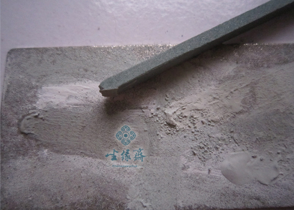 在用1500及2000的砂条抛光时,一定要注意用力的程度,第一步,第二步,可以稍微用力一些,是为了去除刀痕;那么,第三、第四步就要轻轻的揉搓: