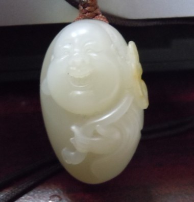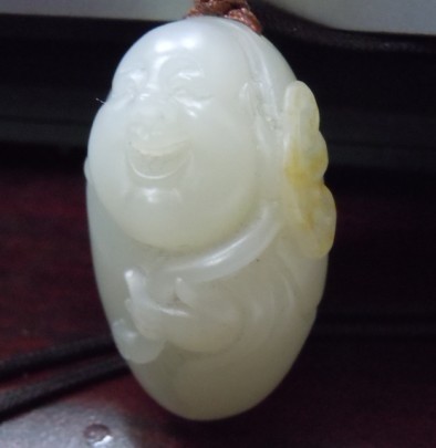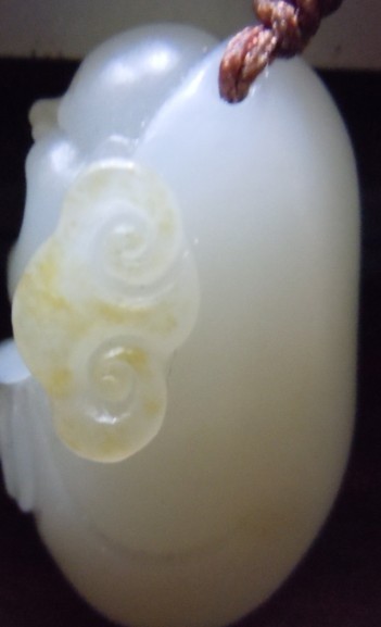 照片有点虚,但是感觉是籽料的,料子油润,细腻度都不错,雕的和可爱,总体都不错,好好收着吧。