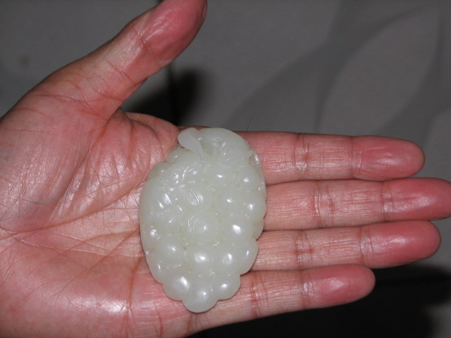 玉看上去油性不错,似乎手上的油性更好噢~~