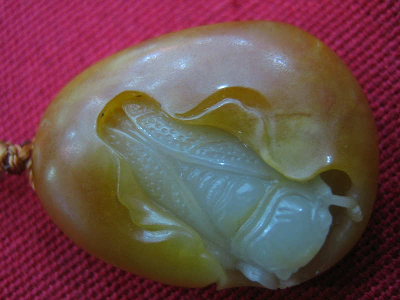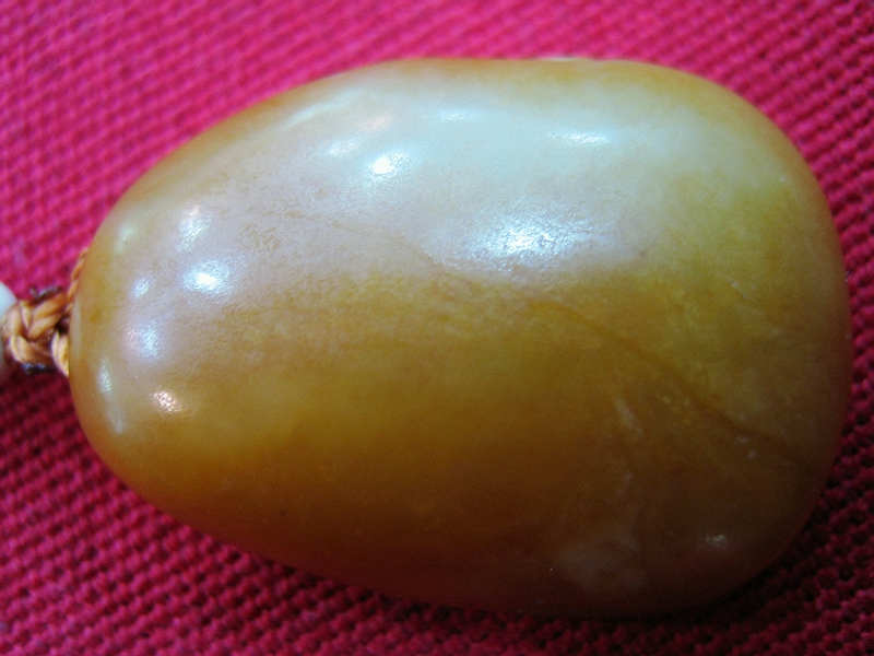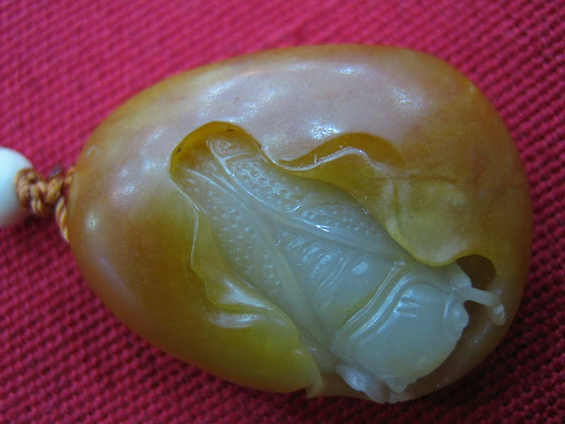 形很漂亮.整体的造型满可爱的,佩带起来应该还不错~~石性重了点,肉的白度还不错
