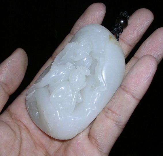 这件东西好象在玉福缘见过,应该叫做老来乐,好象标价十几万元,油脂度不错,白度差一些,雕工是不错但同时也说明这块子料本身不是很完美,需要去除一些东西所以雕成这样。