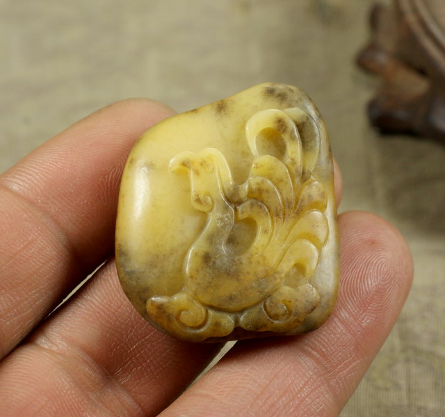 料子脏,石性重,应该属于黄沁料,而非黄玉