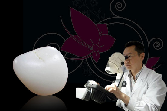 工具识别:利用放大镜观察,只要是天然的石料,无论是什么档次的,永远不会有一个小气泡在玉质里,这是由天然玉质的化学和物理的形成根源决定的。人工合成玉质由于是混合体,经高温、加压等工艺流程,属于非物理和化学性自然形成的结晶体结构,必然存在气泡,无论工艺再好,也会存在。