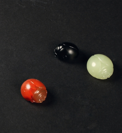 甲壳虫,其背甲穹起,坚硬而厚重,很有霸气,一对触角从头胸前伸出,细琢多足,造型逼真写实,有生机,甲克虫,暗含“一甲及第”或“富甲一方”之意。