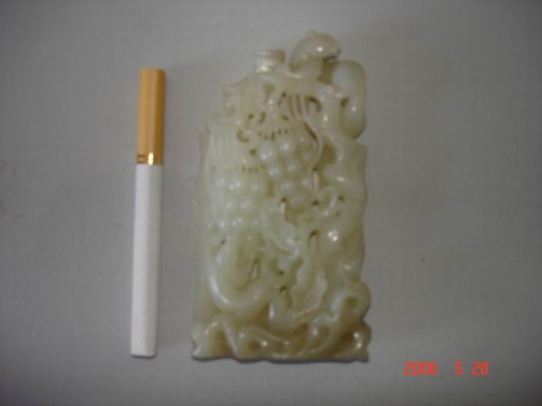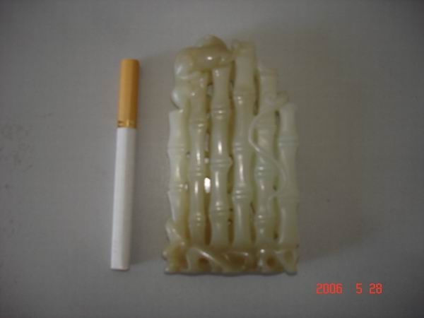 长、宽、厚分别:92*53*13重量未称,刚在家里用闪光灯照的,照的不够清楚,实物比照片白更漂亮。请问是什么料,什么工艺,品质如何,市场价值大约在什么价位?