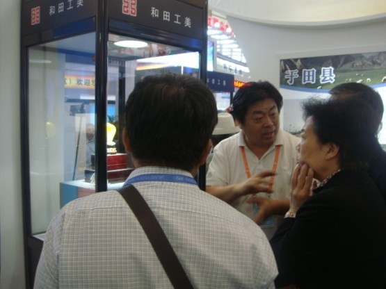 第三届中国—亚欧博览会于2013年9月2日正式在新疆首开帷幕,世界各地的人们聚集新疆。亚博会不仅给了一个了解亚欧各国的机会,也让各国更加了解中国,了解新疆。此次和田工美代表和田地区参展,现场带去了具有代表性的精美玉器,欢迎新老客户、玉友及网友光临惠顾。