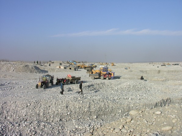 冰川的舌部高达数十米至百余米,晴日不断裂解崩落,伴随着雷鸣般的巨声,漂砾与冰块滚泻而下,落入河中,故在冰河之下也可以找到美玉。雪融水每日有一次洪水,洪水把巨大的冰块沿河冲向下方,这些冰块及冰层融化后也露出玉砾。产出的玉石有白玉和墨玉。这个地区应有原生和阗玉矿床,是玉龙喀什河中子玉的主要来源之一。玉龙喀什河离和田市中心大约20分钟的车程。在河的上游50公里出白色籽玉,带皮籽玉一般产在河的下游。当地人在山洪过后,冬春闲暇时分,常有到河中捡玉的习惯。他们捡玉主要是在河的中游,上下游因地势险恶,所以很难到达。