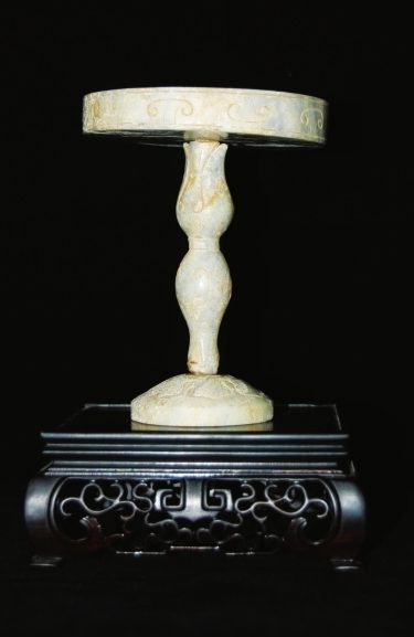 汉代玉灯——存世量极其稀少,故宫博物馆只有一件是战国的,此件稍晚几百年,但能收藏到已属不易。灯由三个玉件组合而成,分灯座、灯杆、灯盘,灯座雕刻柿蔕纹,灯杆雕刻成一根花杆儿,灯盘就好像是从花杆里长出来的一只盛开的花朵。