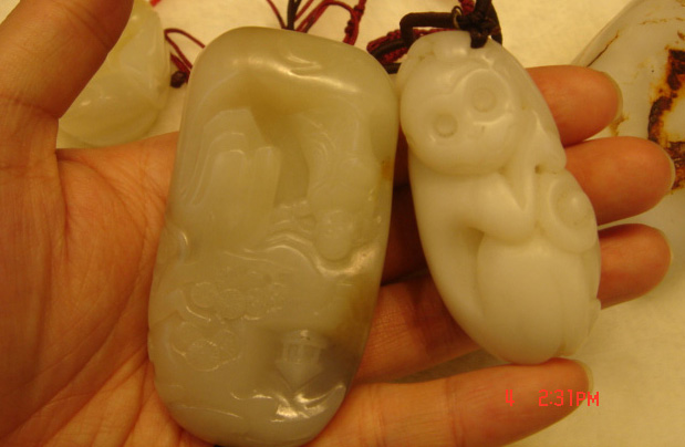 第二个图上的,一个想是俄料的.另一个象是的很僵的青海料的.总之都不是什么值得深度点评的好东西.(个人观点,仅供参考)