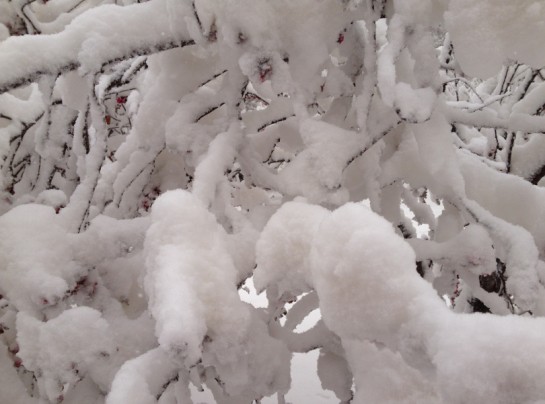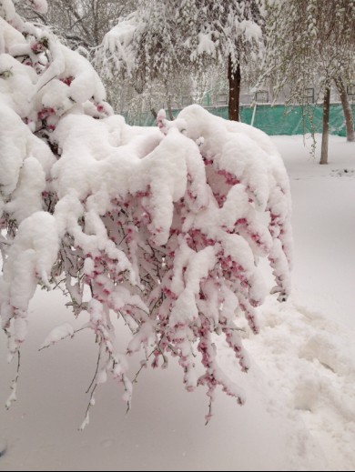 四月飞雪,绿绿的树枝被压弯了,分明是冬天的节奏。。。。。。