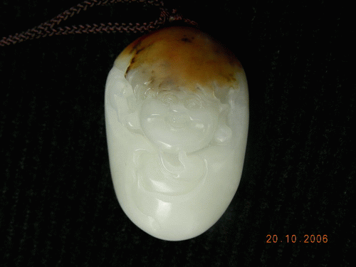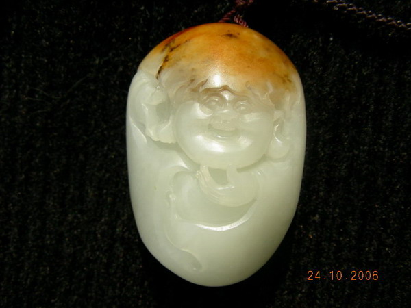 这件作品,我没看到"红运",头顶上的那块皮很脏也很乱,没有红云的感觉.到象是乌云.而且是压在头顶,设计上肯定是有问题的.皮色的留去,一定要巧,不可太牵强.所以我说是败笔.若说是"乌云压顶"到更贴切.(个人意见,仅供参考)