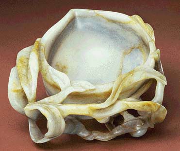 清朝的治玉,尤其是清中期乾隆年间,工艺技巧可谓精绝,玉雕技艺精雕细琢、形象逼真、线条精细、磨光平滑,出现了大量令人惊叹的巧作,例如花果枝叶雕刻得栩栩如生。镂空、半浮雕和浮雕这几种技法盛行,注重规矩方圆,雕琢一丝不苟,直线笔直、委角圆润、尖角锋利、圆形如满月,连细微之处如膛里、底足等都十分讲究。清嘉庆以后,玉雕行业逐渐式微,工艺趋向粗糙呆滞。