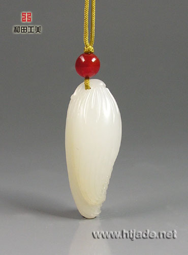 和田玉籽料白玉挂件亭亭玉立。以新疆和田玉籽料为材。玉质缜密细腻,脂性温厚,白度好,色白如雪。工艺师以圆雕立雕等手法琢一玉米,玉米粒颗颗清晰饱满,逼真写实,叶片硕大舒张,脉理清晰,包裹在玉米上,蕴涵“丰收在即,五谷丰登”之意,佩带悦目。