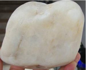 2、水石:这种玉石主要成分是石英岩,其硬度较高,但脆性强,易断裂。内部结构是颗粒状。颜色呈苍白色,光泽看上去较干涩。